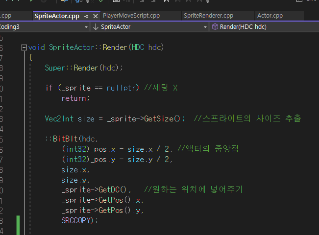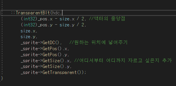이미지를 나타내는 spriteActor.cpp쪽에서 BitBlt를 수정