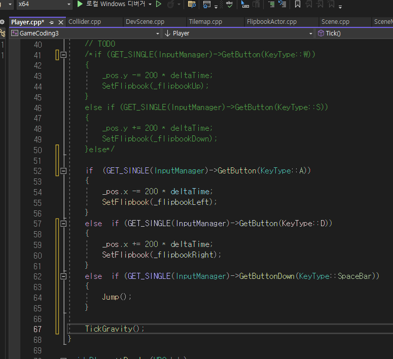 여기서 onGround, jumping 같은 불리언 멤버변수를 둬서