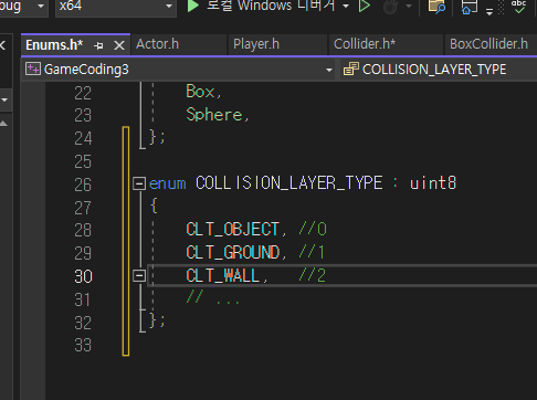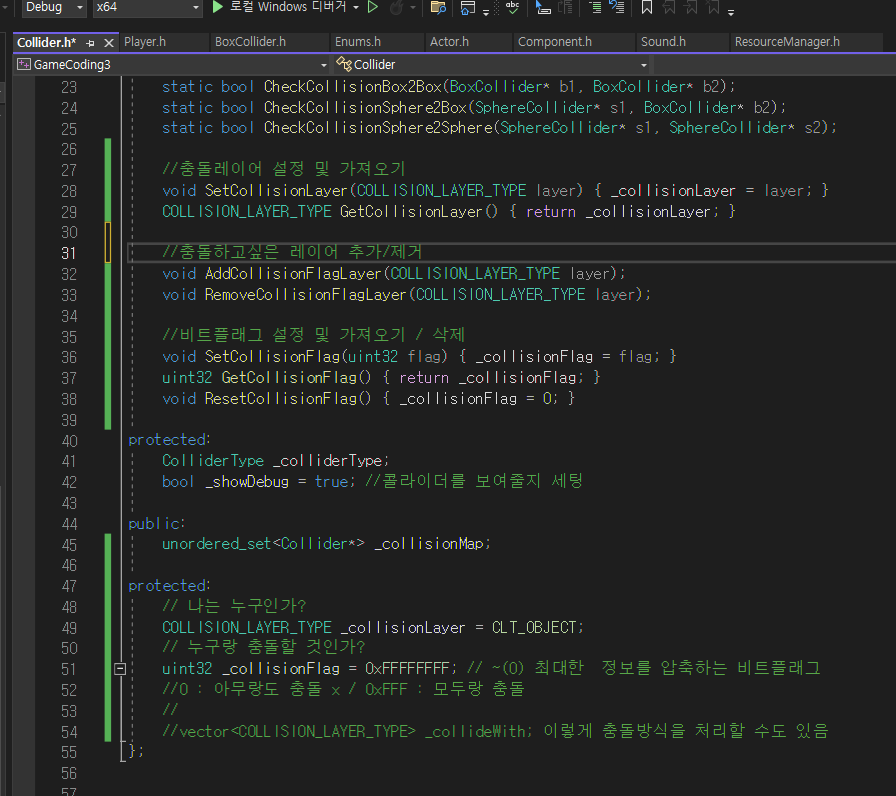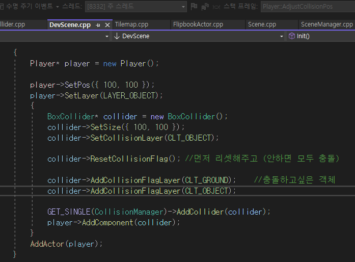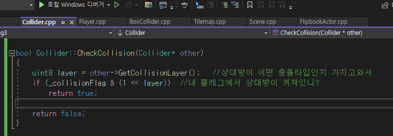 다시 돌아와서 어떤 레이어와 충돌할건지 알려주는 함수 작성해주고