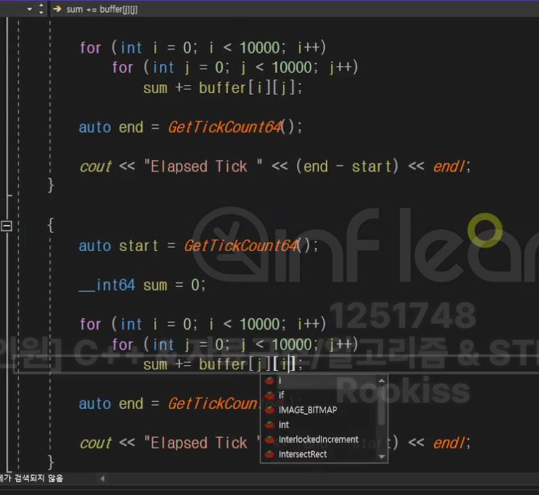 위와 같은 코드지만 추가로 j,i를 바꿔서 찾는 시간이 얼마나 걸리는지 비교해보면
