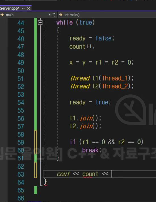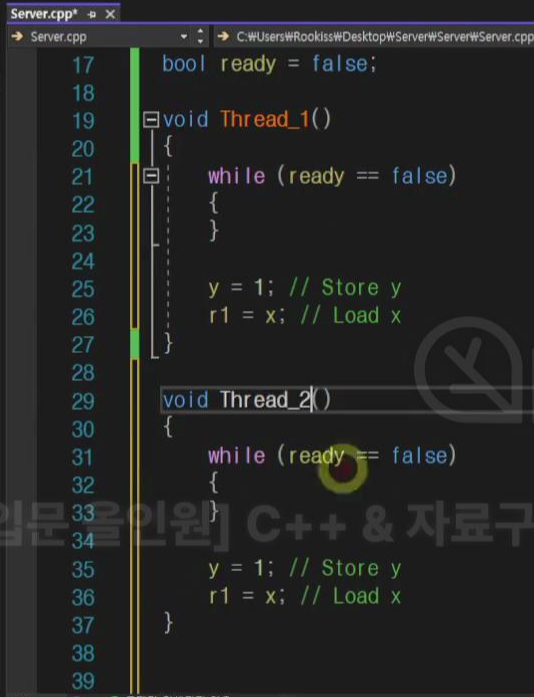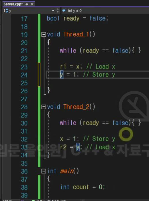 이건 cpu가 명령어를 뒤집어버려서 코드가 끝까지 실행되는 것 (멀티 스레드 환경)