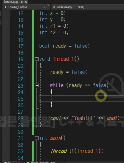 첫 번째 스레드에서는 레디에 따라 y 값이 달라지게 함