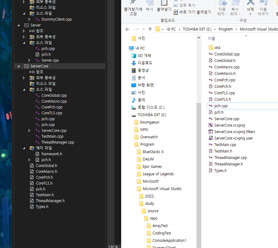 오른쪽이 새파일, 왼쪽이 내가 켜둔 프로젝트