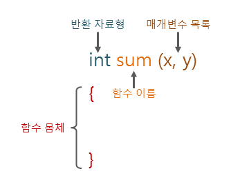 ✔ 반환 자료형 : 함수가 모든 작업을 마치고 반환하는 데이터의 타입을 명시