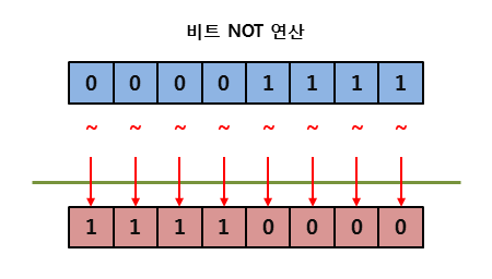 - 비트 NOT 연산자는 주어진 비트가 1이면 0으로, 0이면 1로 반전시켜 1의 보수로 만듦