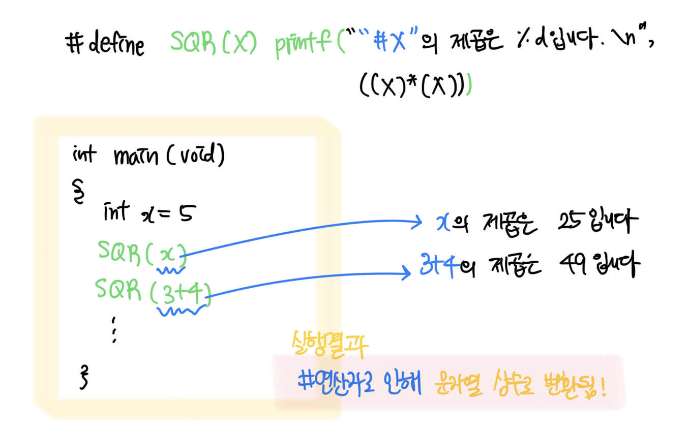 #define SQR(X) ((X)*(X)) // 매크로 함수는 이처럼 모든 인수를 괄호로 묶어줘야 함.