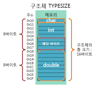 - 총 이 구조체의 크기는 총 16바이트가 되며, 그중에서 패딩 바이트(padding byte)는 3바이트가 됨