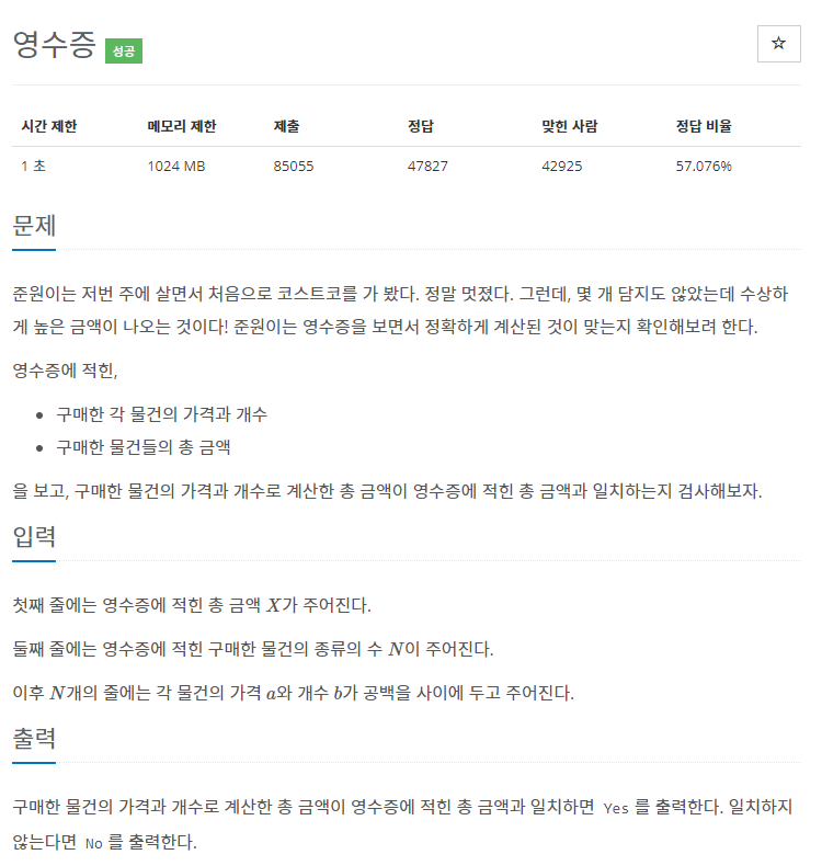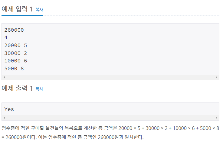 printf("No\n"); // 총 금액이 일치하지 않는 경우