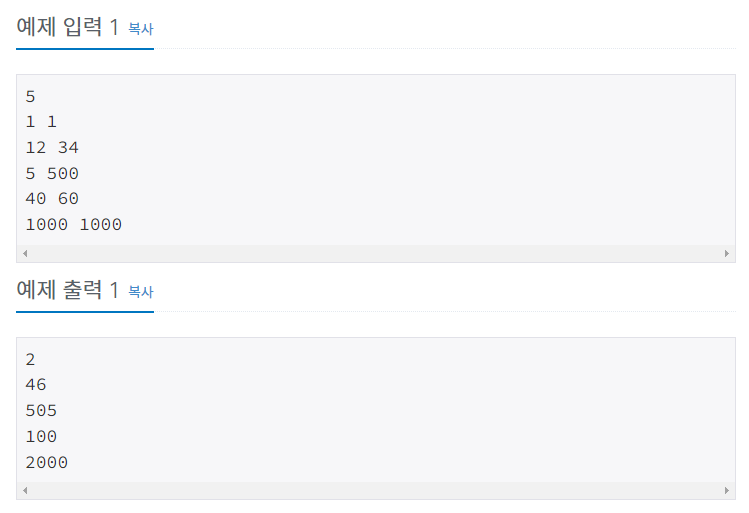 scanf("%d %d", &A, &B); // 두 정수 A와 B 입력