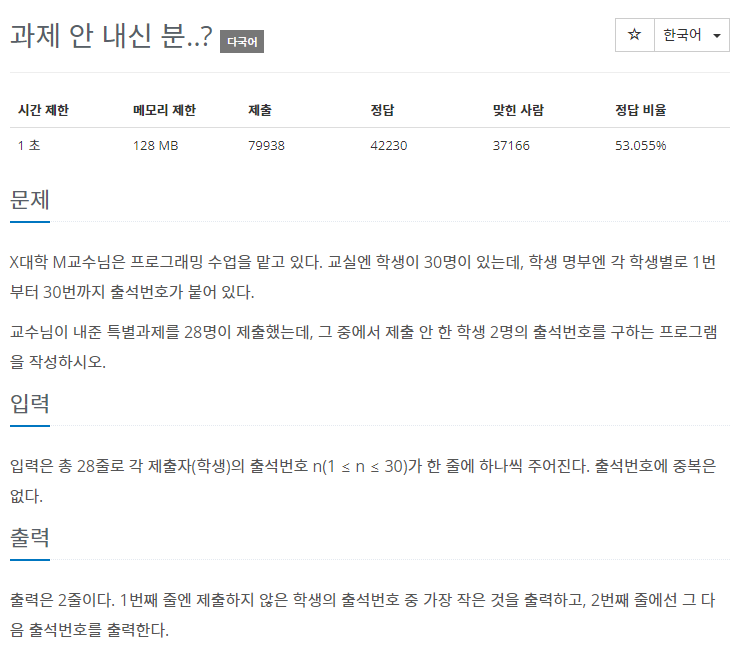int submitted[31] = {0}; // 제출한 학생 출석번호를 표시할 배열