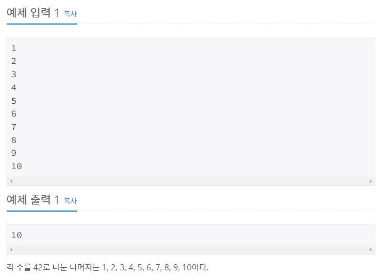 int count = 0; // 서로 다른 나머지의 개수를 저장할 변수