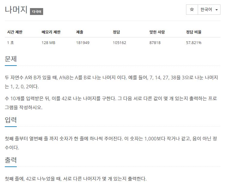 배열을 활용하여 서로 다른 값의 개수를 찾는 문제