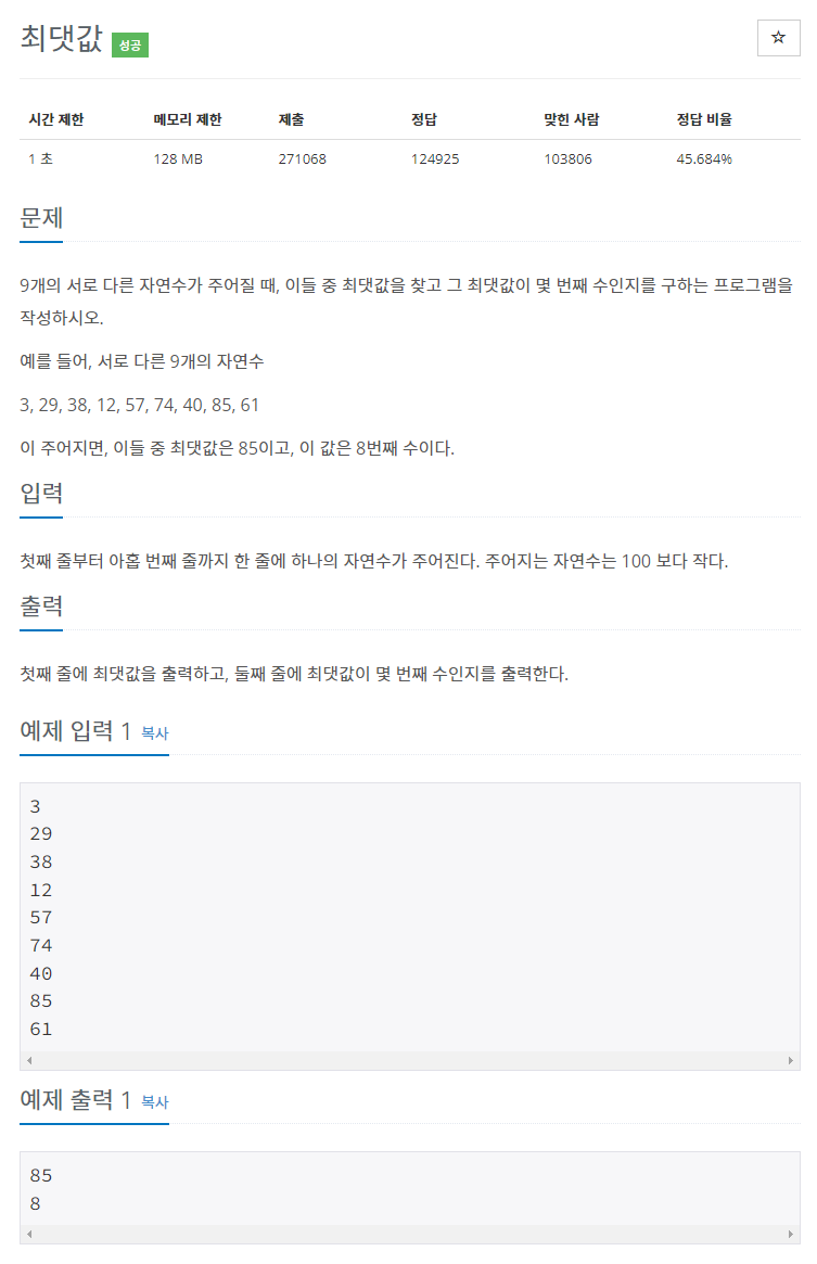 int N[9], max = 0, num = 0; // 변수 초기화 뒤에 세미콜론을 추가해주어야 합니다.