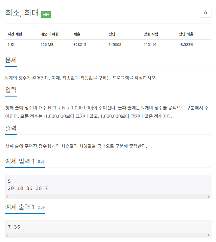 printf("%d %d", S, B); // 최솟값과 최댓값 출력