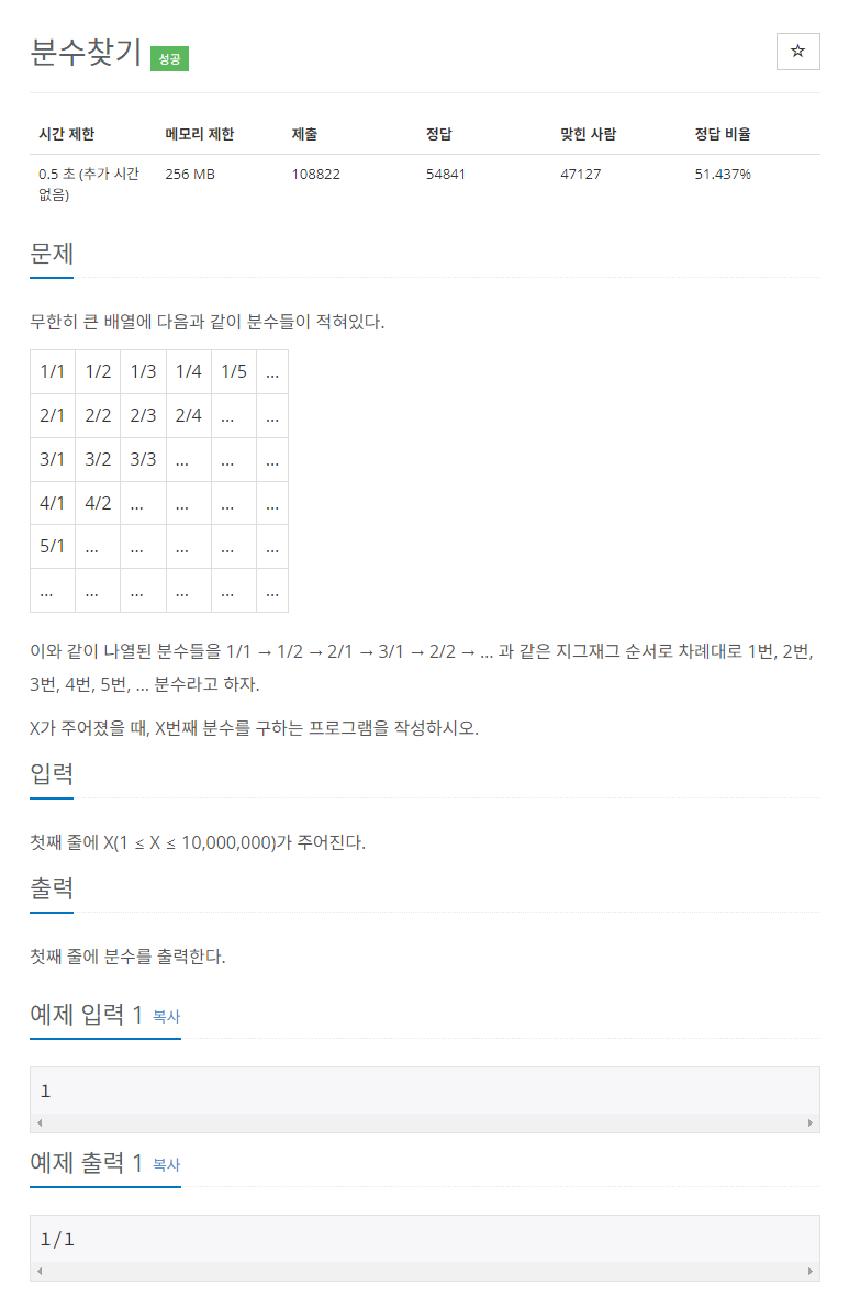 // 홀수 라인일 경우 분자는 line - X + 1, 분모는 X