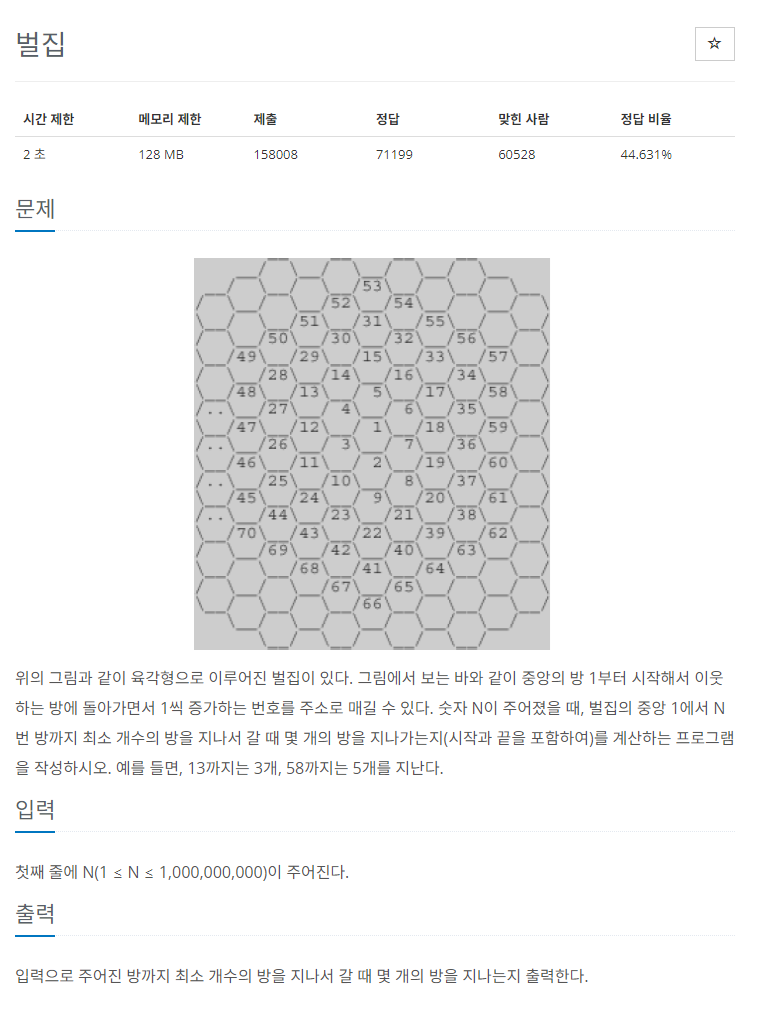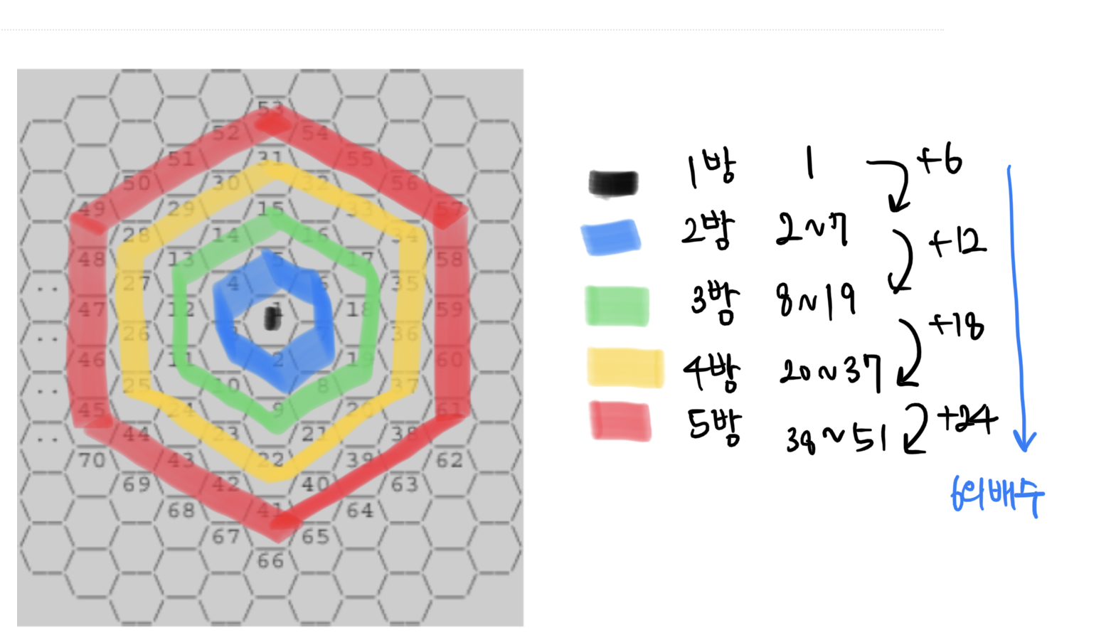 벌집이 형성되는 규칙에 따라 벌집의 위치를 구하는 문제