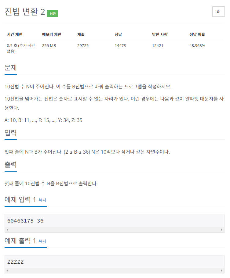 scanf("%d %d", &N, &B); // 10진법 수 N과 변환할 B진법 입력 받기