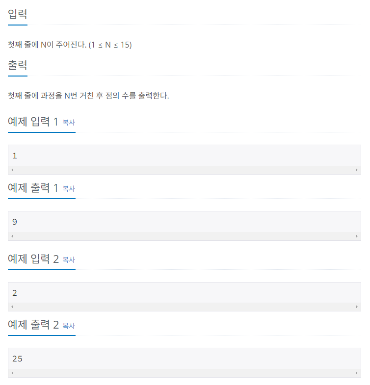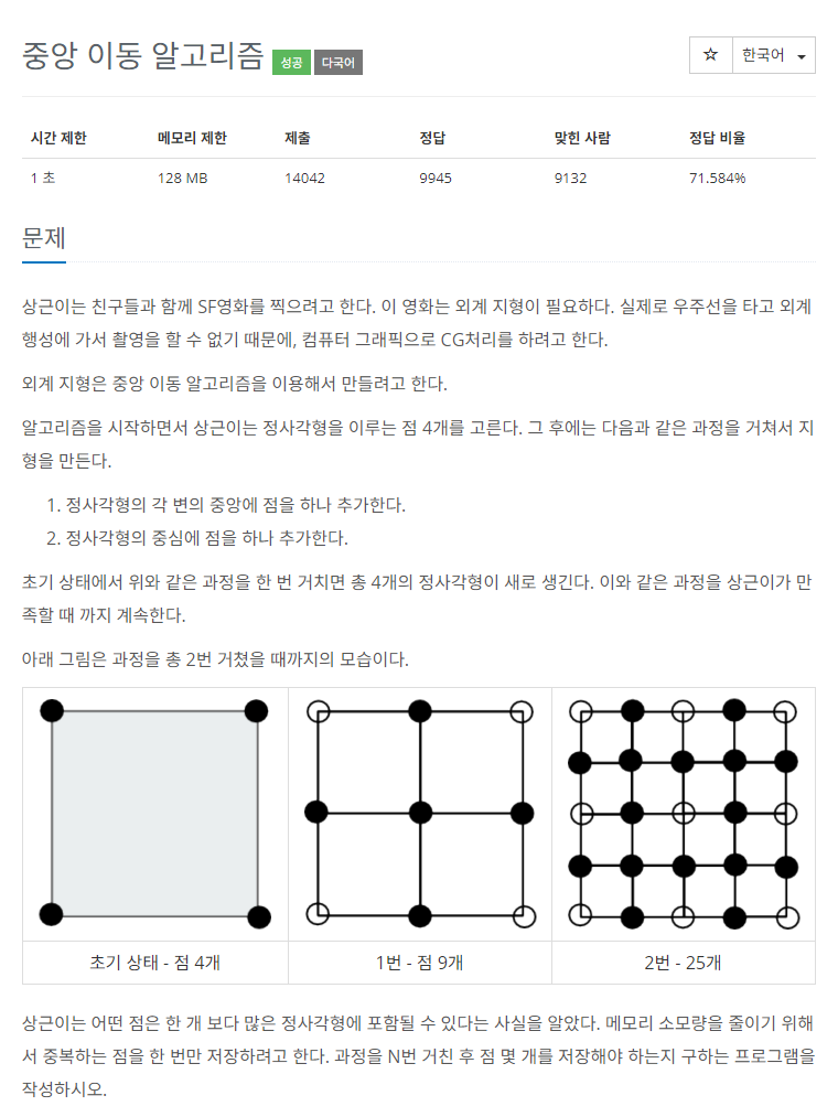 [백준 BOJ] 2903 중앙 이동 알고리즘