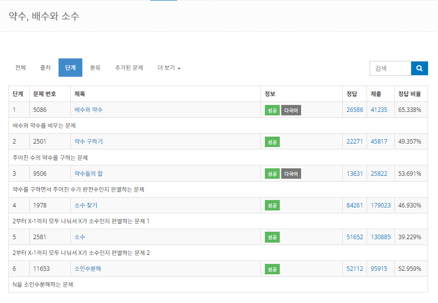 약수, 배수와 소수 단계
