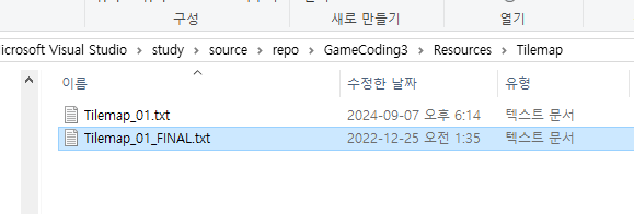[게임 프로그래머 입문 올인원] 2D 포폴 준비 : 젤다 실습(114강) A. 2D 포폴 준비 7. 젤다 실습a. 타일맵 데이터 가져오기여기까지 만든 파일을 기반으로 조금의 수정을 둬 젤다 실습을 해볼것임! b. 충돌 판정 함수타일맵으로 충돌판정을 하기 위해 함수를 새로 만들어줬다 가려고 하는 위치에 갈 수 있는지를 파악해 불리언값을 뱉는 CanGo함수와벡터값으로 위치를 이동시키는 ConvertPos를 만들어준다 c. Player 수정하기 : 움직임여태까지 하드코딩했던 움직임을 enum으로 깔끔하게 잡아준다 한칸씩 이동하는 걸 볼 수 있음 (타일 켜고 끄는걸 깜빡하고 안꺼줘서 중간에 X로 눌렸음..) d. DevScene 코드 수정위 코드는 다음 DevScene으로 넘어오게된다 디버그 모드를 끄고 보게되면 이렇게 나온다! e. 서.. 프로젝트/[인프런] 게임 프로그래머 입문 올인원 2024.09.10